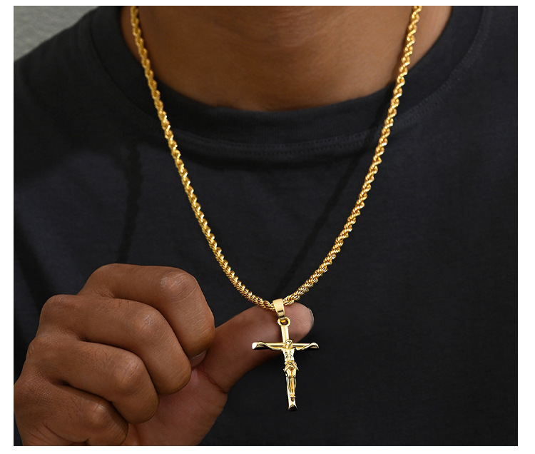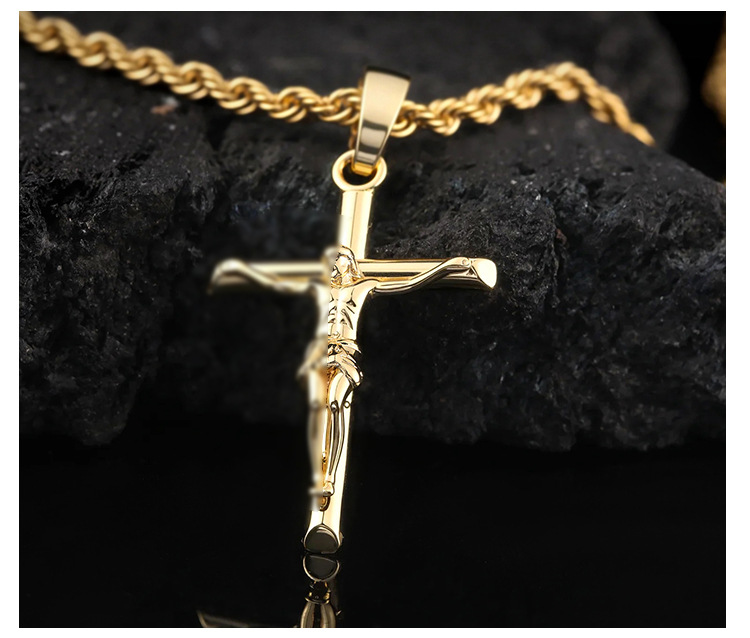 Cross shape popular necklace unisex personality 18K gold-plated - wpp